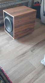 Jl Audio subwoofer per uso Home. CONDIZIONI PARI AL NUOVO!! (introvabile a questo prezzo) Monta un driver w7 impiegato nella serie fathom "prezzi a partire da 4500eur. Inutile dire che suoni egregiamente; è capace di scendere in maniera impressionante anche sotto i 14hz (i 14hz creano letteralmente un terremoto). Perfetto non solo per l'home cinema ma anche per accompagnare un impianto HiFi di livello. Look unico dato dalla cassa (realizzata professionalmente) in colore nero e vero piallaccio di palissandro. La cassa è estremamente robusta grazie ai molteplici rinforzi interni di cui è dotata. Necessita di amplificazione.