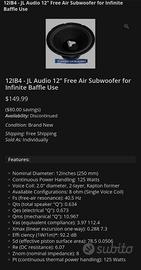 Vendesi subwoofer JL AUDIO 12" modello 12IB4 in cassa reflex. Perfettamente funzionante ed in ottime condizioni estetiche.