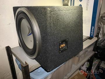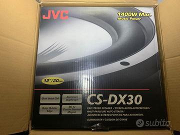 SUBWOOFER NUOVO 12" (30CM) JVC CS DX30 1400W doppia bobina, doppio magnete già in box costruito in mdf 19mm di spessore, rivestito in moquette antracite e con morsettiera dorata.