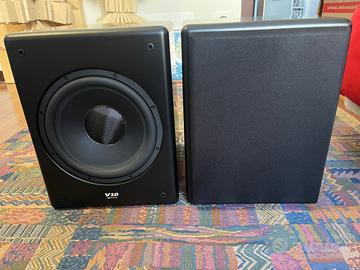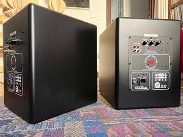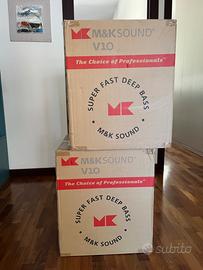 Vendo coppia di Sub M&KSound mod V10+ Bellissimi: condizioni 10/10, del tutto pari al nuovo, sia esteticamente (nessun minimo graffio) che sonicamente (sfruttati poco in quanto hanno lavorato a volume bassissimo, solo per aumentare l'ambienza) Li vendo per cambio tipologia impianto. 300 Watt RMS, 600 Watt di picco. Regolazione della fase da 0° -180°, risposta in frequenza 20-200 Hz, filter 60-200 Hz Con imballi originali, libretto di istruzioni, telai acustici anteriori e accessori (piedini e cavi di alimentazione mai aperti, guanti in cotone). Posso spedire con i suddetti imballi originali. Il prezzo richiesto si riferisce alla coppia di subwoofer. Si prega cortesemente di contattarmi solo se realmente interessati. No perditempo e sognatori, grazie.
