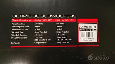 VENDO SUBWOOFER MOREL ACOUSTIC, IL MARCHIO HI END MOLTO CONOSCIUTO NON HA BISOGNO DI MOLTE PRESENTAZIONI. IL MODELLO IN QUESTIONE E' ULTIMO CON CONO IN FIBRA DI CARBONIO, IN DIMENSIONE 10" O 25CM, CON MONO BOBINA DA 2 OHM. IL PREZZO E' RIFERITO AL PEZZO SINGOLO. LA GRIGLIA DI PROTEZIONE E' IN METALLO E NON PLASTICA. TENUTA IN POTENZA 600W RMS.