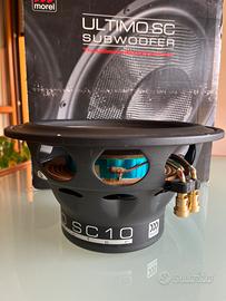 Vendo subwoofer morel ultimo sc 104 da 25 cm, singola bobina 4ohm, unico propietario, usato in un impianto da ascolto, in ottime condizioni e perfettamente funzionante, completo di scatola e griglia originale. Disponibili due box, uno in reflex e uno in chiusa.