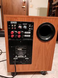 Causa passaggio a impianto valvolare con maggior potenza, vendo fantastico Subwoofer Passivo, Marca Wharfedale, Modello WH-210, potenza in Watt Rms 100, Impedenza 8 Ohm, potenziometri di regolazione per volume e Frequenza Crossover, pulsante accensione/spegnimento, pulsanti phase e on/off, Rca per collegamento ( in mono) a Sintoamplificatore A/ V ( Sistema Multicanale Home Theatre ) o in stereo per collegamento a amplificatore integratato a due canali.