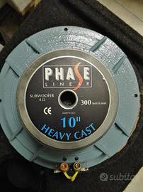 Vendo Subwoofer PASSIVO Phase-Linear Heavy cast 10" cestello in alluminio pressofuso con mobiletto in legno. Di forma trapezoidale,con misure come da foto 300 watt.di potenza massima su 4 ohm