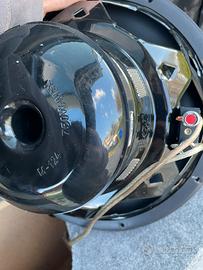 Vendo magnifico subwoofer da 750w 32cm, con cassa preparata da un preparatore acustico. Suona perfettamente senza alcun difetto. Amplificatore da 1000 W con controllo termico automatico Configurazione canali: 4 canali; 3 canali; 2 canali Filtro passa alto/basso: 80 Hz Pendenza filtro passa alto: 12 dB/ott Pendenz filtro passa basso: 18 dB/ott Risposta in frequenza: 5 - 50 kHz Tolleranza: +0/-3 dB