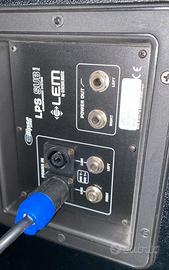 Subwoofer passivo professionale Lem. Stereo, ovvero 200+200wrms e 400+400watt max. 8+8 ohm. Condizioni pari al nuovo a parte qualche segno superficiale dovuto a spostamenti. Utilizzato per un secondo impianto di casa home theatre, quindi mai sfruttato. Misure circa 50cm per lato. Ha le uscite filtrate con passa alto a 110hz per una coppia di satelliti. Consegna a mano. Volendo, dispongo del finale Gemini Gpa2000 con imballo, da 85+85wrms in 8 ohm (e 220wrms in bridged) che utilizzavo per il sub e mixer Behringer Dx052 in buone condizioni e con imballo. Prezzo per il finale e per il mixer da concordare acquistando in blocco.