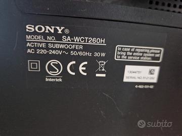 Vendo per inutilizzo subwoofer sony bluethoot+telecomando Model SA-WCT260H Audio Formati DTS DOLBY PROLOGYC 2 DOLBY DUAL MONO