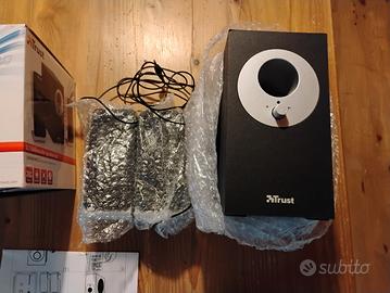 subwoofer speaker set Trust set autoparlanti 28w alimentazione da presa elettrica con subwoofer in legno. perfetti