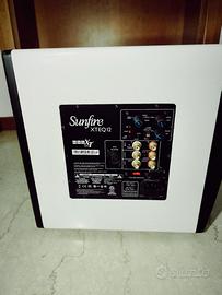 SUNFIRE XTEQ12 subwoofer attivo, woofer 2x12", potenza 3.000 W RMS, equalizzazione automatica Subwoofer con amplificatore interno da 3.000 W con tecnologia brevettata Tracking Downconverter power supply; circuito digitale di autoequalizzazione con microfono esterno; connettori di ingresso RCA e XLR; Asymmetrical Cardioid Surround; Risposta in frequenza 16-100 Hz(+0,3dB); Crossover passa alto a 85 Hz; Crossover passa basso a 30 Hz; Regolazione fase 0°-180°; Microfono per la misurazione ed equalizzazione automatica; Diametro woofer attivo e passivo 12" e corsa 3"; Trigger da 12V; Dimensione (HxWxD) 33x33x31,12; Peso 22,3 kg; Finitura bianco lucido Listino ufficiale 2.670,00 € Revisionato marzo 2026, condizioni estetiche e funzionali perfette, compreso di microfono di calibrazione e manuale. Se richiesto posso spedire.