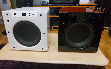 Vendo due Subwoofer Velodyne SPL-800ULTRA ,in ottime condizioni estetiche e funzionali, completi di microfono di calibrazione e telecomando. Subwoofer di grande ampiezza e impatto sonoro. Prezzo singolo 920 euro, prezzo per la coppia 1700 euro. Vendo per passaggio a Velodyne Digital Drive. Amplificatore: 2400 watt dinamici / 1200 watt RMS Dimensioni ridotte del cabinet