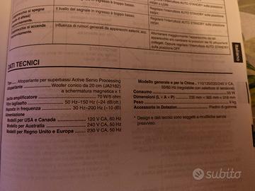 Subwoofer Yamaha YST-SW45 .per info leggete i dati Tecnici sulla foto.