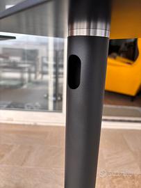 Vendo coppia di supporti da pavimento per casse acustiche. Base in vetro 30x30 cm con piedini in gomma, ripiano in vetro 20x20 con gommini antiscivolo, montanti in metallo con passacavi. Altezza totale 72 cm.