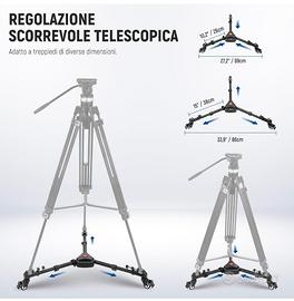 nuovo usato una sola volta. carrello supporto per cavalletto macchina fotografica o videocamera. marca neewer. regolabile per adattarsi a tutti i tipi di cavalletto.