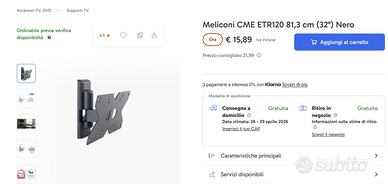 Vendo supporto da muro tv 32 pollici CI SONO TUTTI I COMPONENTI Vendo per passaggio a tv più grande e quindi cambio di supporto