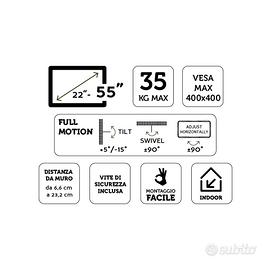 Supporto da parete per tv LCD/LED/PLASMA, VESA MAX 400, compatibile con TV da 22" a 55" peso massimo 35 Kg