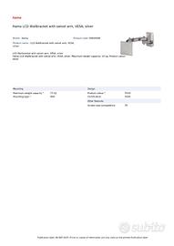Supporto da parete con braccio snodato per schermi LCD con standard VESA, colore argento.