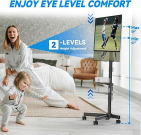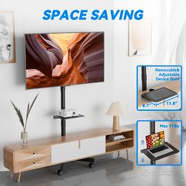 Supporto mobile per TV a schermo piatto o curvo LCD da 23 a 60 pollici, carrello inclinabile per TV portatile fino a 25 kg, con ripiano per computer portatile, piano di rotolamento, max. VESA