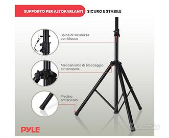 Come da foto vendo supporto per cassa audio treppiedi pieghevole, marca Pyle regolabile in altezza sino a cn.177,8 con foro di inserimento cm.3,5 ,supporta il peso di casse acustiche sino a Kg. 59. L’oggetto e’ pari al nuovo completo di scatola. No perditempo solo contatti telefonici e ritiro in zona .(NON SPEDISCO).