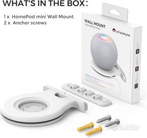 Supporto per Montaggio a Parete a Muro per HomePod mini Accessori con Gestione dei Cavi per Altoparlanti Smart Home Salvaspazio per Cucina Bagno e Camera da Letto (Bianco, 2 Pezzi)
