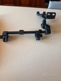 Vendo per inutilizzo supporto poggiatesta auto per tablet e smartphone, come si vede dalle foto il supporto è telescopico ed ha due posizioni per agganciare i dispositivi, questo per poterlo condividere con più passeggeri o per poterlo utilizzare per una visione univoca.