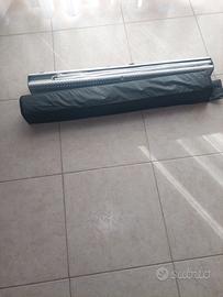 Stand trasformabile in schermo supporto videoproiettore. Misure estese h 207 cm, largh 87 cm, completo di custodia. Tre pali telescopici, basi di supporto. Misure compatto cm 87 x 9 x 9. Montaggio facile. Preferibile scambio di persona, eventuale spedizione a vostro carico. Per altre informazioni potete contattarmi. Grazie Biagio