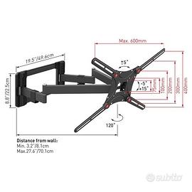 Vendo, causa errato acquisto, supporto tv a parete orientabile, permette di installare tv dai 13 ai 90 pollici e con un peso massimo di 60 kg, mai usato.