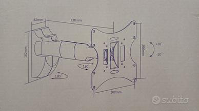 Causa cambio TV svendo supporto nuovo (con busta viti, bulloni e rondelle sigillata) per schermi LCD nero (orientabile e inclinabile) marca NVS modello LCD24. Adatto per schermi fino a 42” e peso max di 30Kg. Standard VESA per le viti di aggancio: 50x50, 75x75, 100x100 e 200x200. Massima lunghezza esteso 33cm
