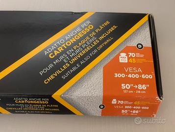 Piastra per supporto TV a muro nuova, mai montata, acquisto sbagliato e reso non possibile. Vendo per inutilizzo. Tutte le specifiche in dettaglio nelle foto.