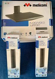 Supporto da parete per TV e accessori composto da tre pezzi e copri-cavi, nuovo MELICONI