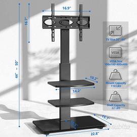 30 °girevole; Il supporto può essere impostato su 4 livelli di altezza, intervallo di regolazione da 1118mm a 1268mm, per una visione ottimale; con una portata massima di 50 kgs (110 lbs).