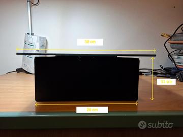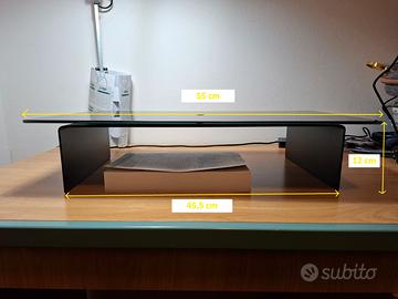 Vendo supporto TV da tavolo in vetro, colore nero, con piano superiore girevole a 360° e vano sotto (utile per decoder/console/soundbar piccola).