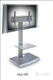 Supporto TV da pavimento meliconi flat vision sky 100 per TV da 30-70 pollici con ripiano in Vetro Temperato. Porta tv fino 40 kg, ripuano fino 7kg. Colonna in alluminio e base in MDF con sistema posteriore per nascondere i fili. Orientabile in qualsiasi direzione Dimensioni 75x120x47