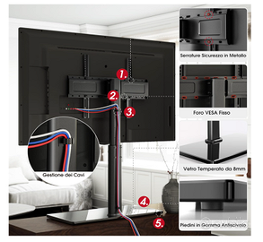 Supporto TV da 42-85 Pollici, girevole e altezza regolabile.