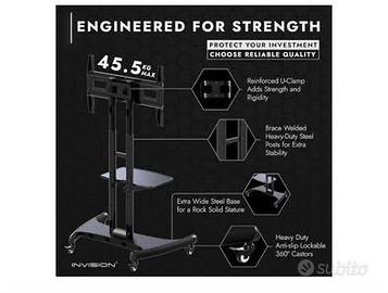 Vendo supporto TV da pavimento praticamente come nuovo. Compatibile con schermi da 32 a 75 pollici con sistema montaggio VESA 600x400 max e regolabile in altezza sia supporto tv sia il supporto decoder . Prezzo trattabile, disponibile per qualsiasi info.