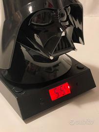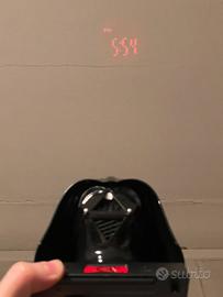Quando scatta la sveglia impostata riproduce il suono del respiro di Darth Vader Proiezione sul soffitto dell’ora indicata Dimensioni: 13x16x12cm