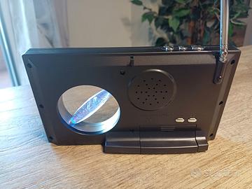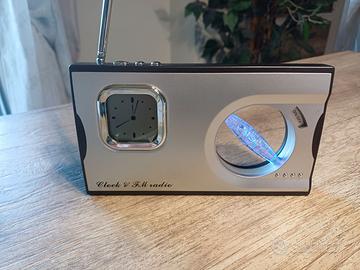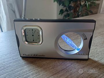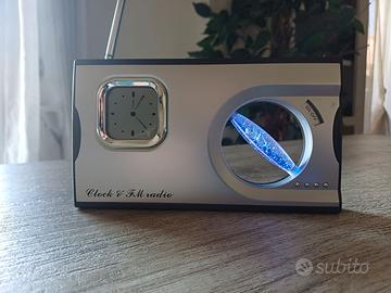 Sveglia digitale da comodino con radio FM integrata. Funzione di allarme con snoozing. Design originale. Mis. 16,5 x 9 × 2.