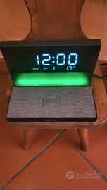 Sveglia e orologio digitale con design moderno. - Superficie di ricarica wireless integrata. - Pulsanti di controllo sulla parte superiore.