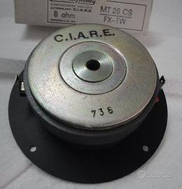 I due tweeter , con guida d'onda "bullet" , marchiati CABOTRON T26 8 ohm , scopriamo essere dei tweeter di produzione CIARE e per la precisione: MT 26 CS/FX TW di cui allego foto dati di fabbrica ( fino a prova contraria) .