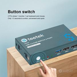 ?Interruttore a pulsante e USB 3.0 e USB 2.0? Interruttore a pulsante. Uso conveniente. Con un solo pulsante, puoi passare in qualsiasi momento tra due dispositivi di input e una tastiera e un mouse. Il design della dissipazione del calore può prolungare efficacemente la vita di KVM.Questo switch KVM con 1 porta USB 3.0 e 2 interfacce USB 3.0 può condividere disco U, stampante, telecamera di rete e altri dispositivi USB 2.0 e USB 3.0. Velocità di trasferimento più veloce per la lettura dei file.