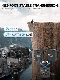 SYNCO G1(A2) Microfono Lavalier Wireless, Radio Microfoni Professionale Senza Fili 2.4GHz per Smartphone, DSLR Reflex, Videocamera, Microfono-Lavalier-Wireless-Professionale-Fotocamera.