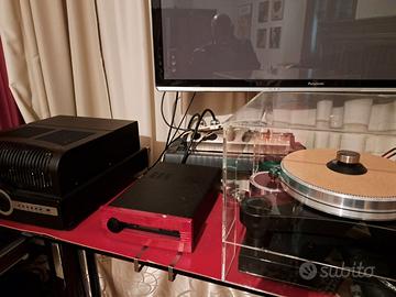 Amplificatore integrato valvolare Synthesis Action A100 Titan, top di gamma della casa italiana, in condizioni eccellenti. Costruzione hi-end con stadio a valvole (KT66) e DAC integrato, capace di un suono caldo, dettagliato e potente (100W per canale). Ideale per impianti audio di alto livello. Dotato di ingressi analogici e digitali (USB e S/PDIF), telecomando e selettore frontale. Esteticamente molto elegante con griglia superiore che lascia intravedere le valvole. Perfettamente funzionante, sempre utilizzato con cura. Possibilità di prova d’ascolto. Caratteristiche principali: •Amplificatore valvolare integrato •Potenza: 100W per canale •Valvole KT66 •DAC interno •Ingressi analogici e digitali •Telecomando incluso Preferibile ritiro a mano vista la delicatezza e il peso.