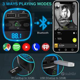 Trasmettitore T25 FM bluetooth 5.0 wireless MP3 player auto vivavoce, doppia porta USB, chiamate in vivavoce e navigazione vocale, formati musicali WMA, MP3, WAV, APE e FLAC, ad euro 11,00.