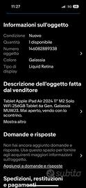 vendo tablet apple nuovo con scontrino e garanzia