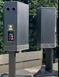 Produttore:Tannoy Modello: 609 Anni di produzione: 4/1991 – 9/1994 Prodotto in: Inghilterra Colori: decoro noce Dimensioni: 499 x 324 x 228 mm (A x L x P) Volume lordo: 16 l Peso: 10kg Dati tecnici Costruzione: bass reflex a 2 vie Terminale: Oro. Bi-cablato Doppio concentrico: Woofer: 1x 200 mm Tweeter: 1x 15 mm Gestione della potenza (nominale/musicale): 10-120/200 Watt Efficienza: 89dB Risposta in frequenza: 46 – 30.000 Hz Crossover: 2,5 KHz Impedenza nominale: 5-8 Ohm Vendita senza stand.. non fate offerte in ribasso non saranno considerate...possibile ascolto presso abitazione prima dell'acquisto.