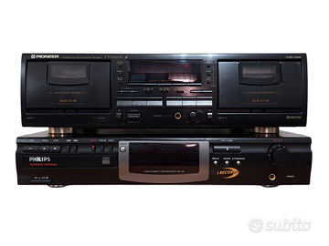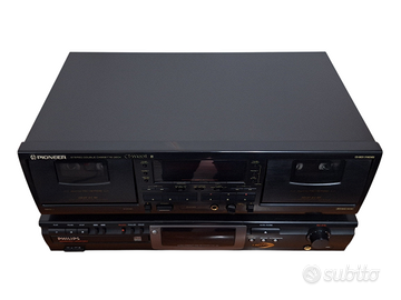 Lettore di audiocassette piastra deck Pioneer CTW420R revisionato e funzionante, con cinghie nuove a 150 euro. Misure L420 P250 H120 Lettore CD vintage Philips Compact Disc Player CDR760 revisionato e perfettamente funzionante a 90 euro. Misure L435 P305 H88 Presentano segni di usura.