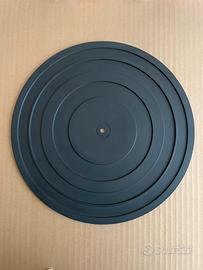 Tappetino, turntable mat, mat del piatto, giradischi, piatto, vintage, in gomma nera, sigla PEP-020D 2, dalle info su internet dice per Technics/Panasonic, anni 70-80, foro centrale 7mm, diametro esterno 28,8cm , altezza4mm.