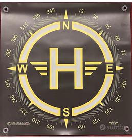 Due colori evidenziano la posizione del pad, arricchito da punti cardinali e gradi, cerchio ed H in materiale catarifrangente.