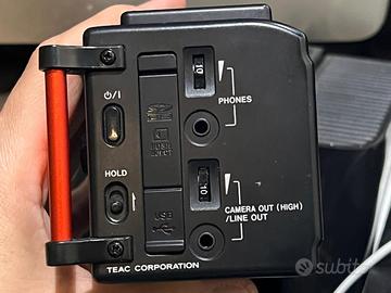 Funziona con batterie di tipo AA oppure opzionalmente con adattatore AC Tascam PS-P520E, Tascam BP-6AA battery pack o semplicemente via bus USB.