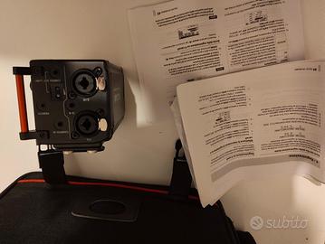 Compreso cavo doppio cannon splittato a minijack per collegamento a videocamera. Si usa con Sd card.