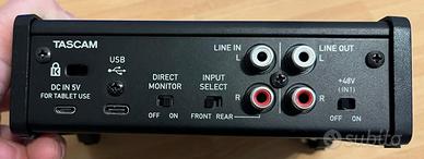Vendo interfaccia audio Tascam US-1x2HR + microfono a condensatore PreSonus M7. Soluzione completa e pronta per registrare: perfetta per voce, podcast, streaming, DJ set e home studio. Scheda audio con 2 ingressi (XLR + Jack), preamplificatori di qualità e phantom +48V Microfono a condensatore con suono pulito e definito, ideale per vocali Qualità audio fino a 24bit / 192kHz Uscita cuffie + line out Condizioni perfette, sempre utilizzati con cura. Nessun difetto, tutto perfettamente funzionante. In regalo cavi cannon (XLR) per il collegamento, già pronti all’uso. Perfetto per chi vuole iniziare subito senza perdere tempo e senza spendere cifre alte. Consegna a mano o spedizione Prezzo: 100€